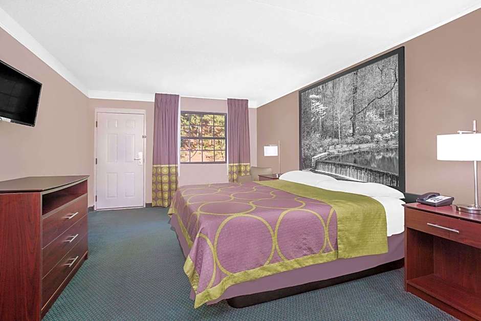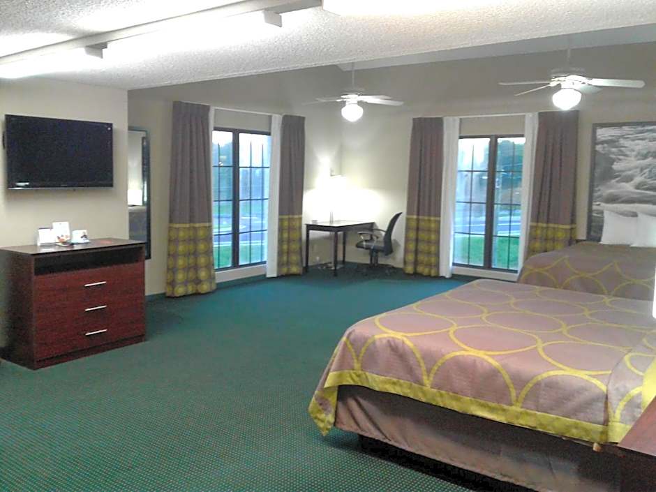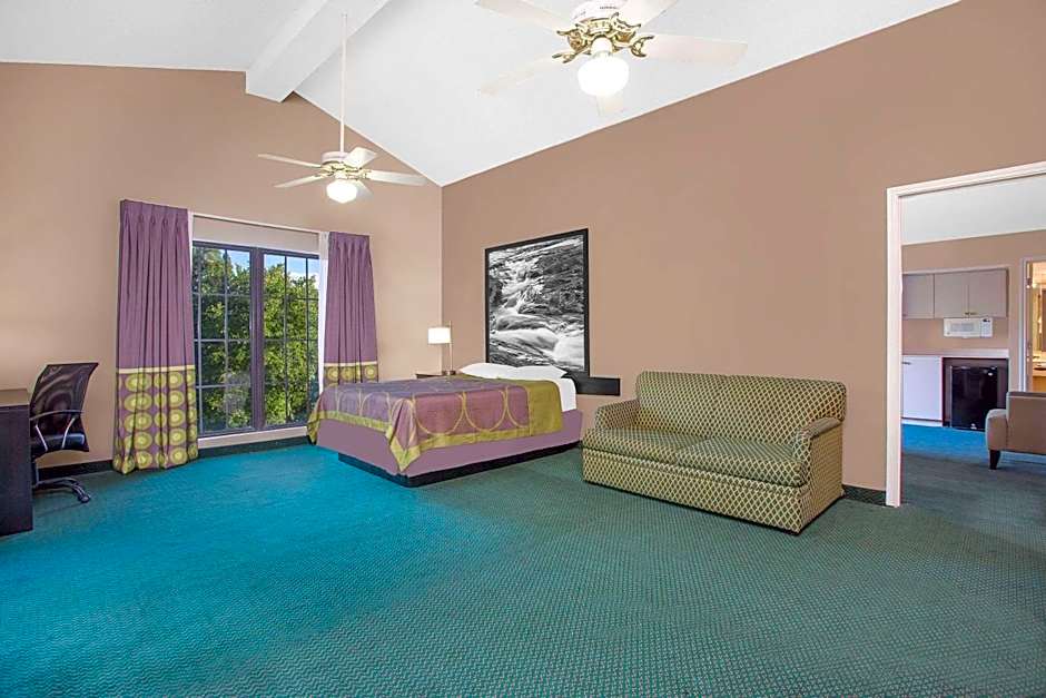 This suite features a microwave, small refrigerator and seating area with a sofa bed.